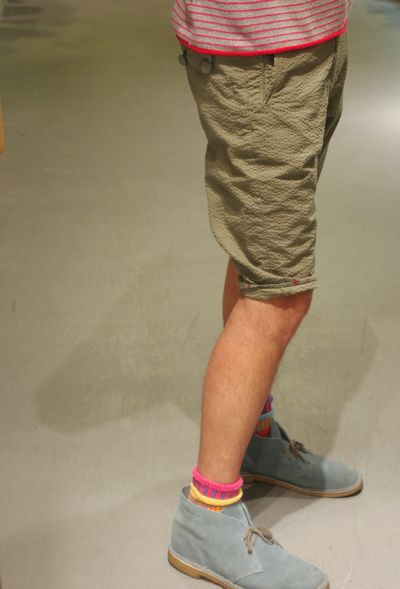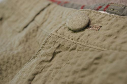 ヒップ回りや足の内側をコーデュロイ地に切り替える事で