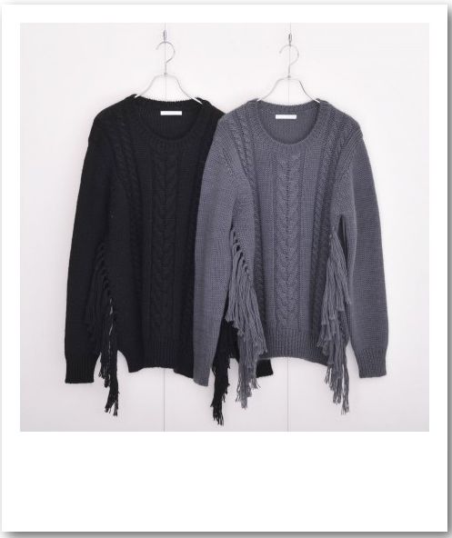 ケーブル編みのウール地を使用したニット