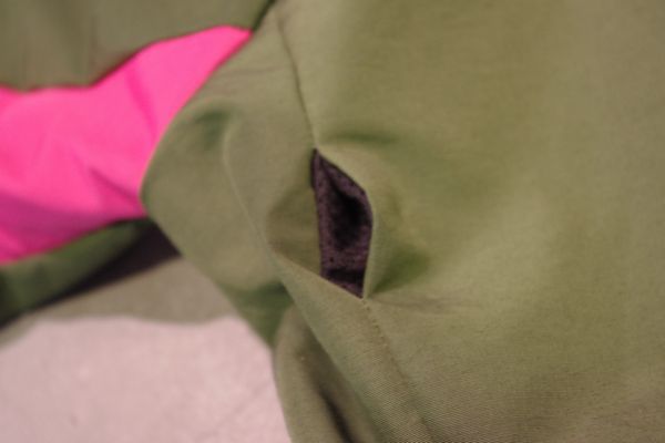 4つのパーツで袖を構成した変則的なラグランスリーブ