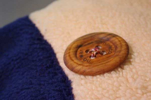ベストと同じく オリジナルで製作された一点一点削りだしのウッドボタン