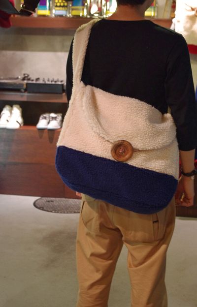 幅45cmほどある大きめモコモコなショルダーバッグ