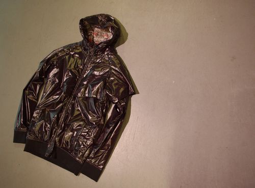タイトなシルエットとシャカっとした素材で
